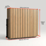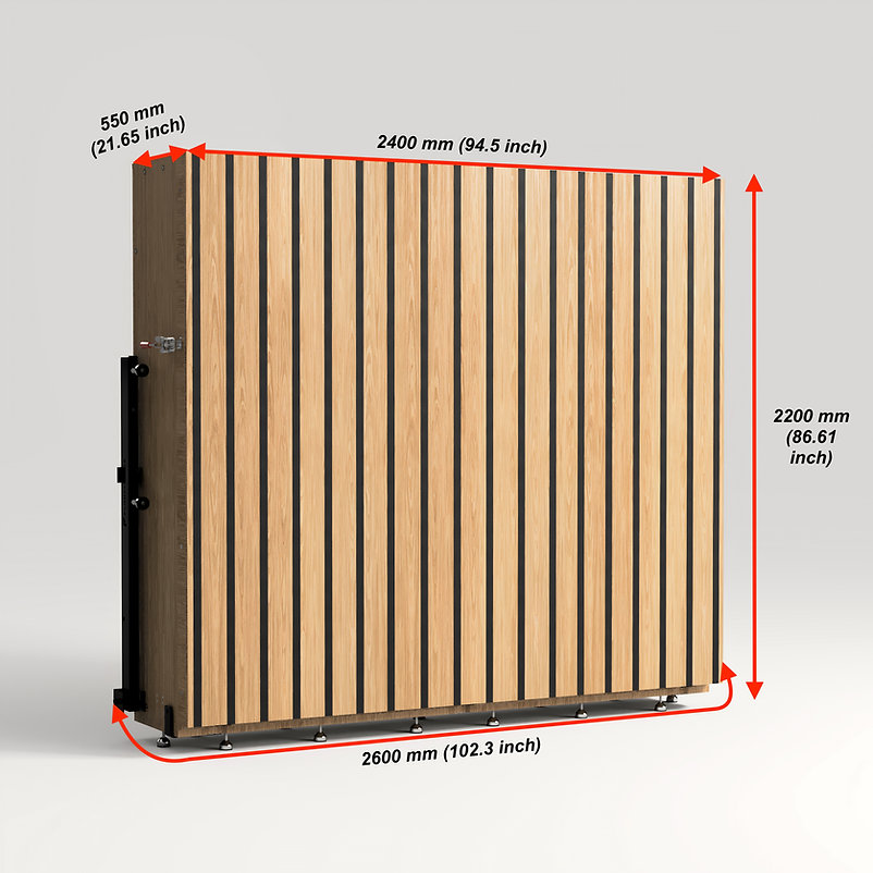 Plié : 2600 mm (largeur) × 2200 mm (hauteur) × 550 mm (profondeur)